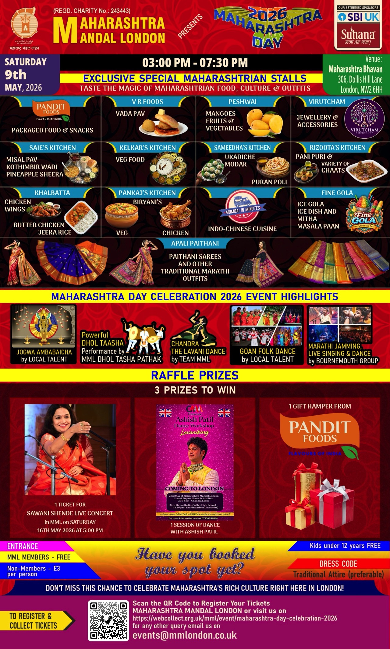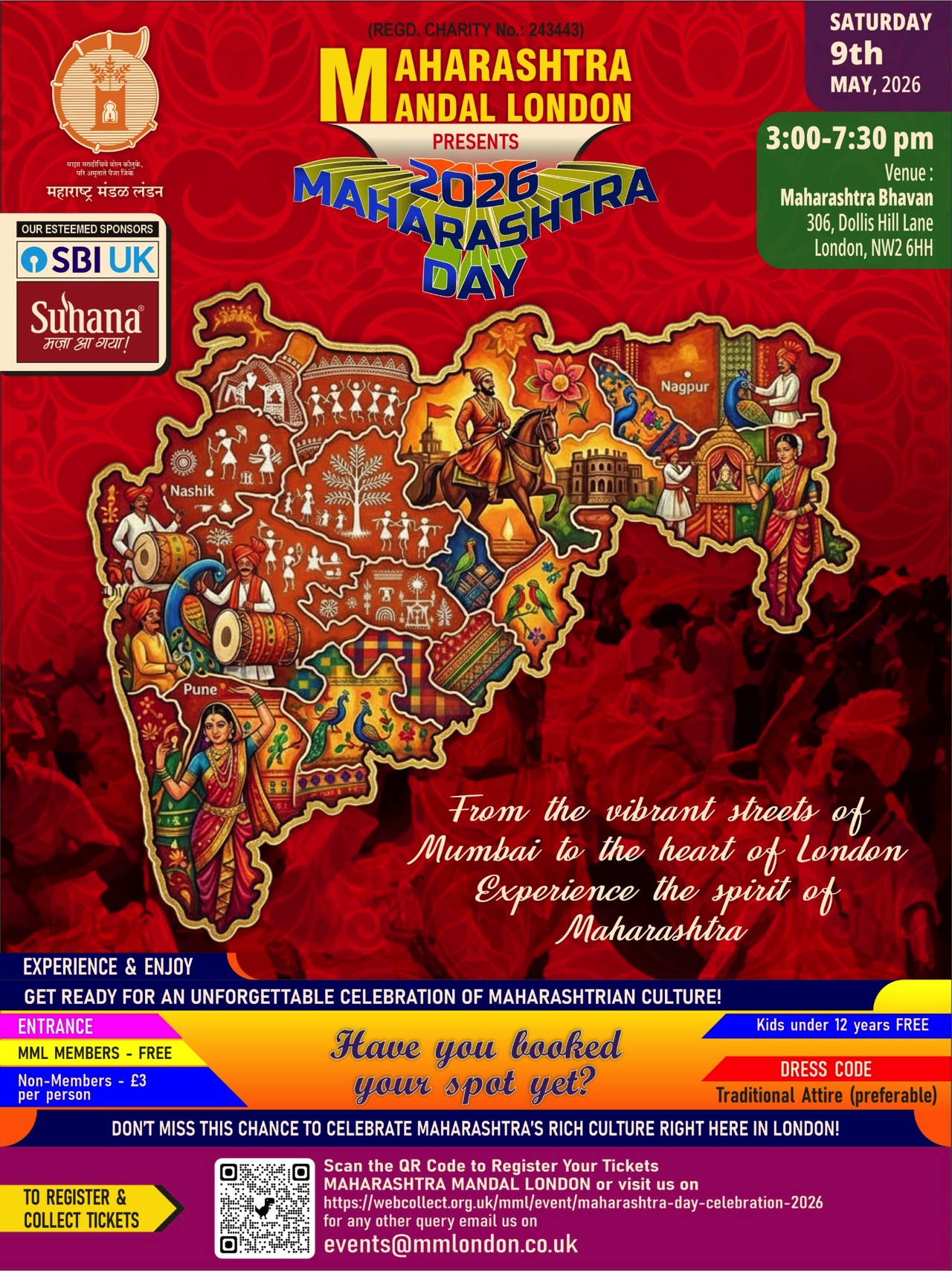 📍 Venue: Maharashtra Mandal London, 306 Dollis Hill Lane, London NW2 6HH